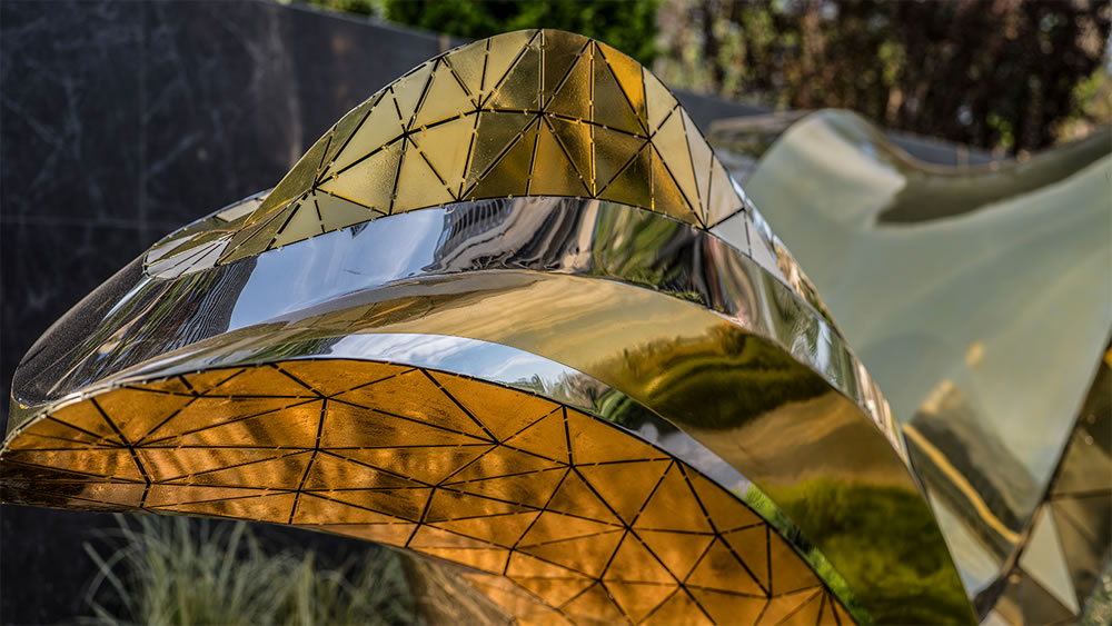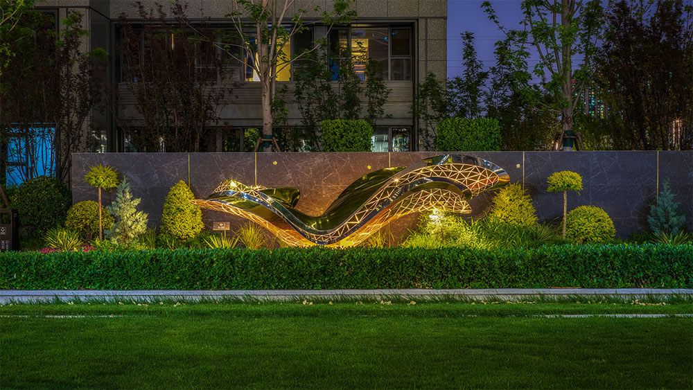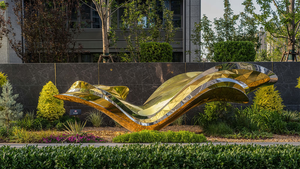 以波浪形態為靈感,選用金色材質,猶如一道凝固的流光,靜謐中蘊藏動勢。